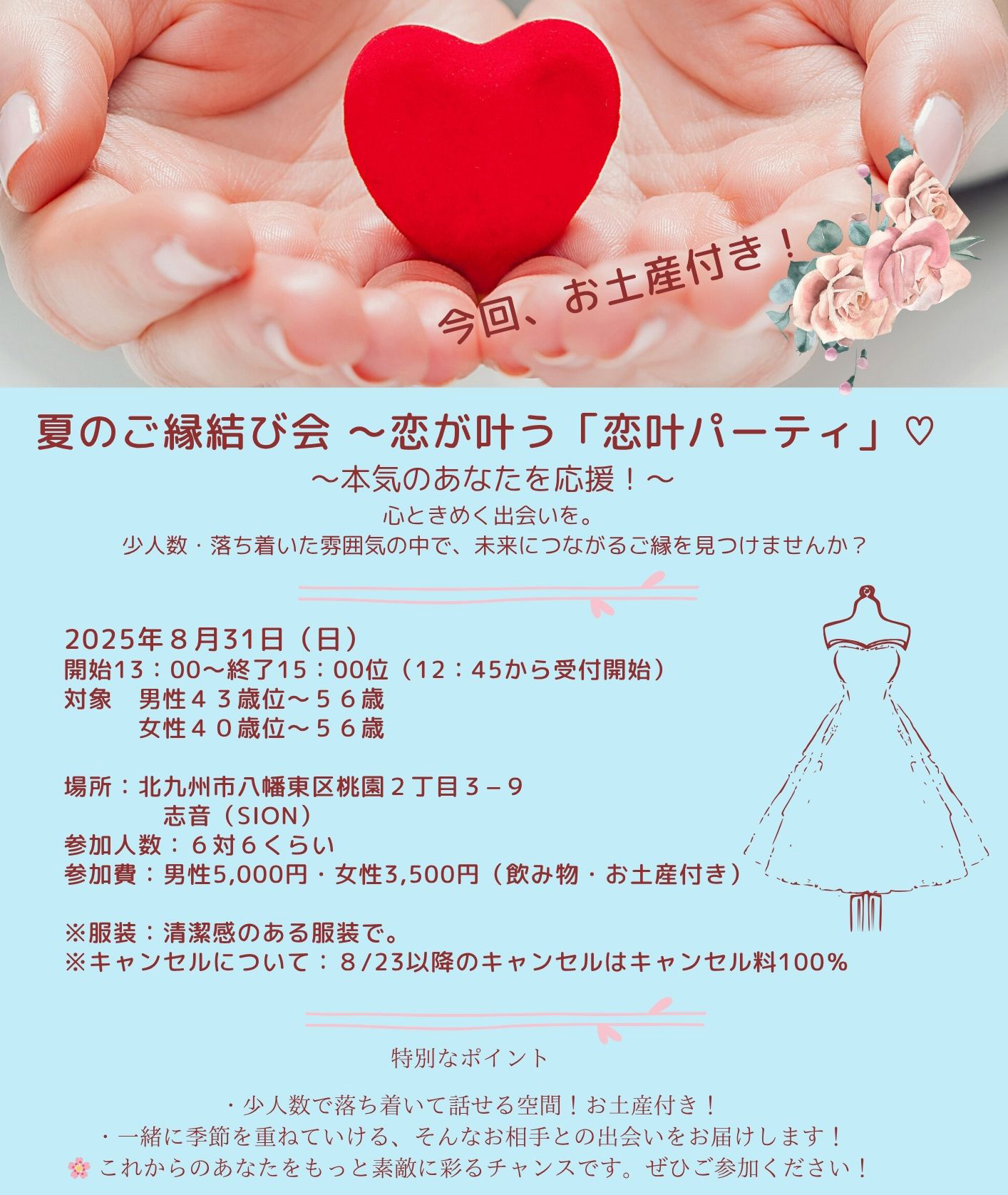 2025年8月31日(日)に『恋叶パーティー 夏のご縁結び会~恋が叶う』が開催されます!